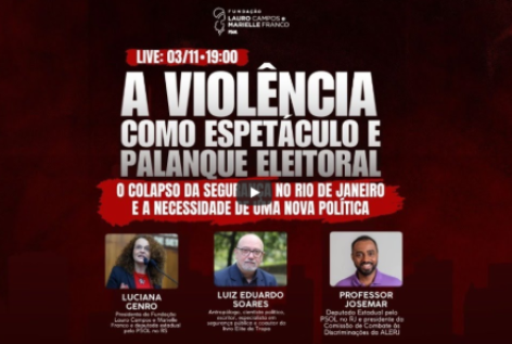 A operação policial mais letal da história do país revela um projeto de segurança pública que prioriza a morte nas comunidades pobres e transforma massacres e chacinas em espetáculos com finalidades eleitorais. Para falar sobre esse cenário e as alternativas de superação, a Fundação Lauro Campos e Marielle Franco realiza uma live com Luciana Genro, presidenta da FLCMF e deputada estadual no RS, Luiz Eduardo Soares, um dos maiores especialistas em segurança pública do país, e Prof. Josemar, deputado estadual no Rio de Janeiro e militante do movimento negro.